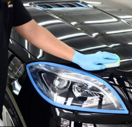 An exterior deep clean wash, decontamination process and clay bar cleaning is applied to the paint. The ceramic coating is applied by hand, cured and buffed.
